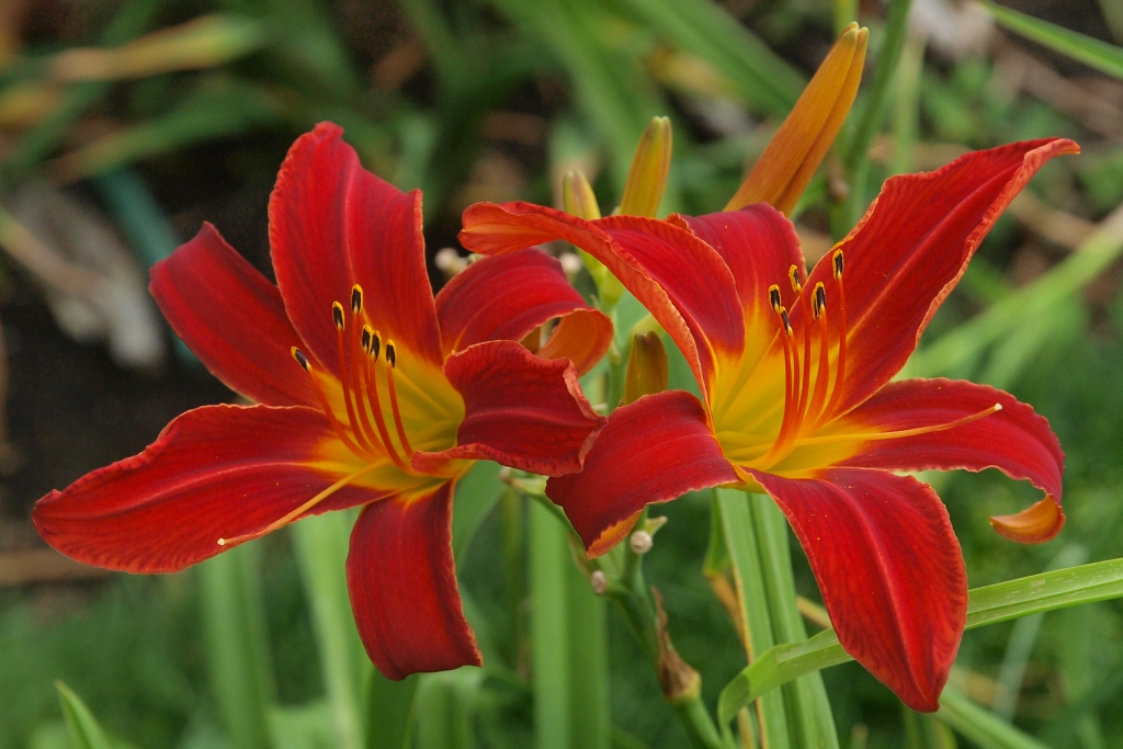 The bright star shaped blooms are slightly to the orange side of red, but always draw attention. Sepals recurve consistently and petals a little less so.
